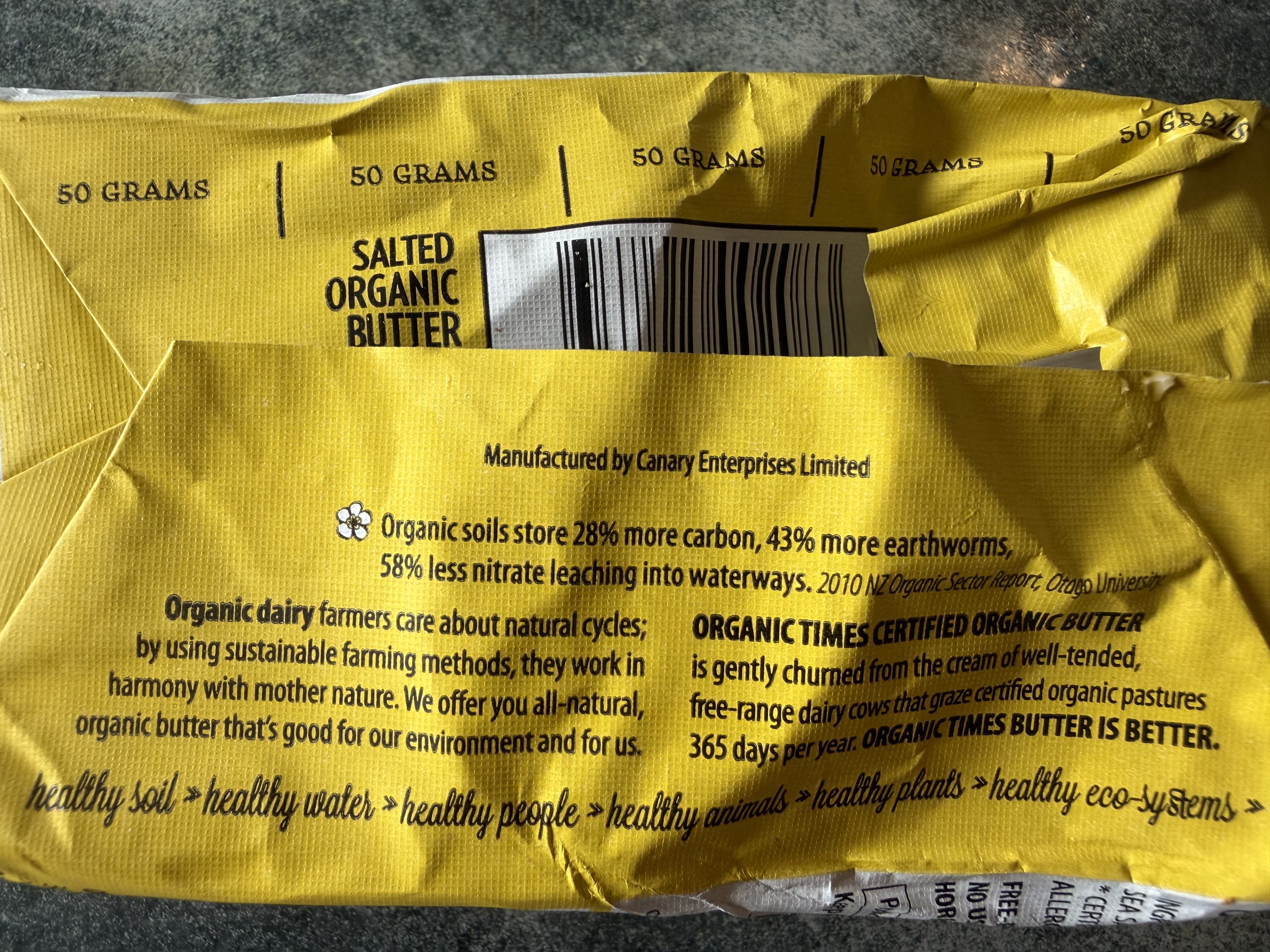 Digging deeper led me to Canary Foods, a New Zealand dairy manufacturer. Their site and product history line up with the type of butter being produced for Organic Times under contract.